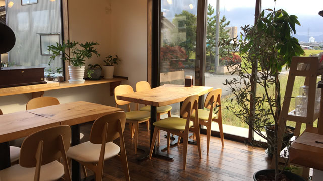 無垢の床材を使い天然木のテーブルが置かれたナチュラルな雰囲気の店内。心地良い音楽と珈琲の香りが漂い、慌ただしい日常の喧騒を忘れさせてくれる居心地の良さがあります。
